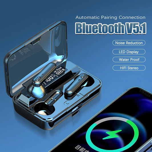 RM X08 Bluetooth Headphones True Wireless Earbuds 60H Playback LED Power Display Earphones with Wireless Charging Case IPX5 Waterproof in-Ear Earbuds with Mic for TV Smart Phone Computer Laptop Sports